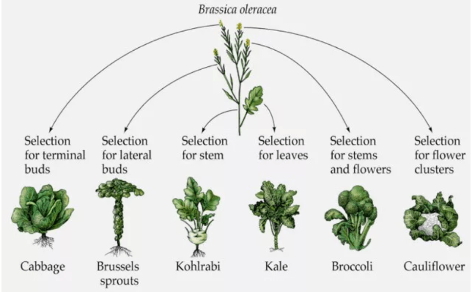 If you take a closer look at the genetics of kohlrabi, it comes from the ancient wild mustard plant. Over the evolution of this ancient brassica ancestor, several mutations occurred that caused its stem to thicken. After many years of growing and accumulating the new “thick stem” gene, the vegetable eventually evolved into today’s modern kohlrabi. This is actually how most modern brassicas came to be. They evolved from the same ancient wild mustard ancestor-but different genetic mutations resulted in each developing a different “preferred trait”. Broccoli contains the evolved flower, cabbage contains the evolved terminal leaf bud, brussel sprouts contains the evolved lateral leaf bud, and kohlrabi contains the evolved stem.