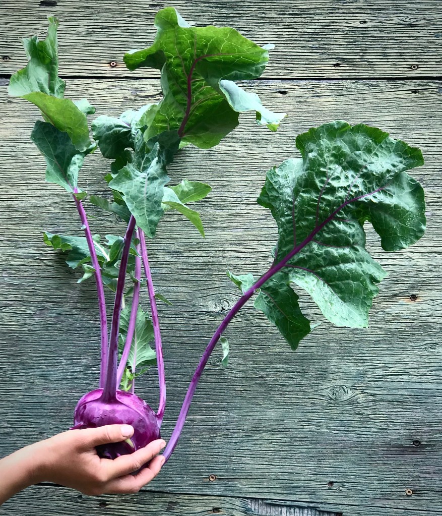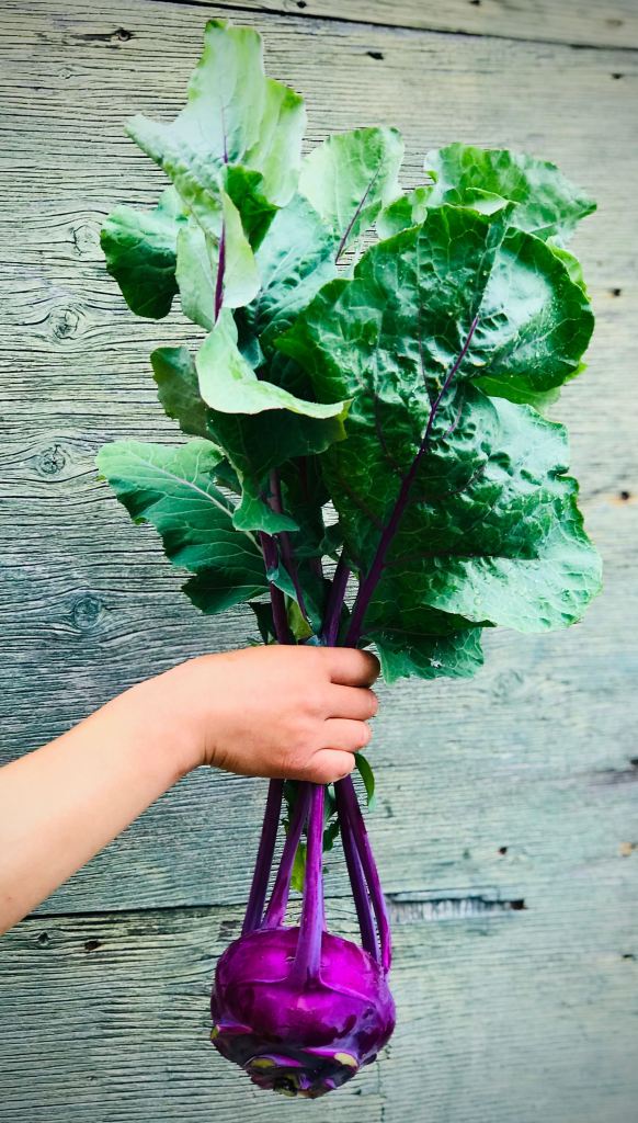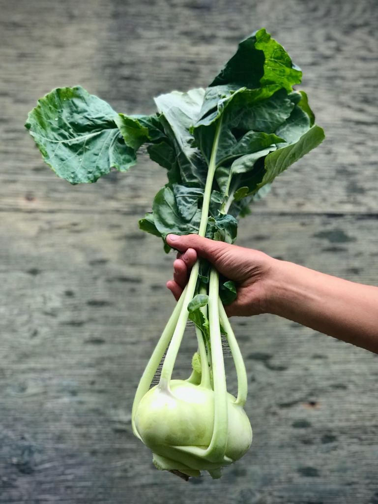Have you ever heard of Kohlrabi? This weird vegetable club highlight is a member of the brassica family, meaning it is related to broccoli, cabbage and brussel sprouts. It grows vigorously in the cooler seasons, making it a fantastic spring and fall staple. It also acts as an excellent storage crop and when properly stored, can potentially last the entire winter!