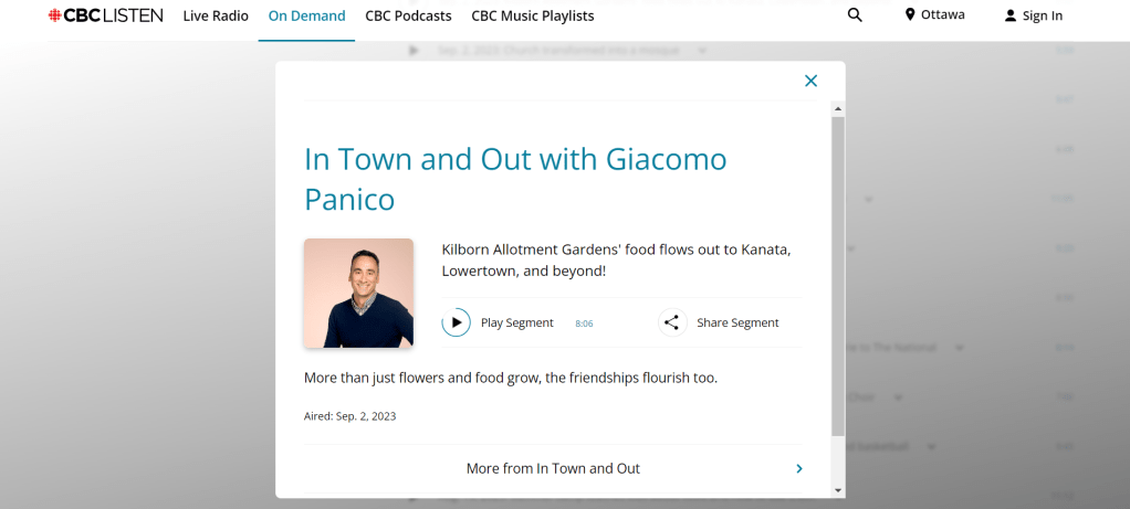 Recently, I was lucky enough to be asked to do an interview for CBC’s morning radio show, In town and Out with Giacomo Panico. It was a great experience and I loved getting to show Giacomo around Laughing Radish. Check out the interview at the link below- my segment starts at 6:19!